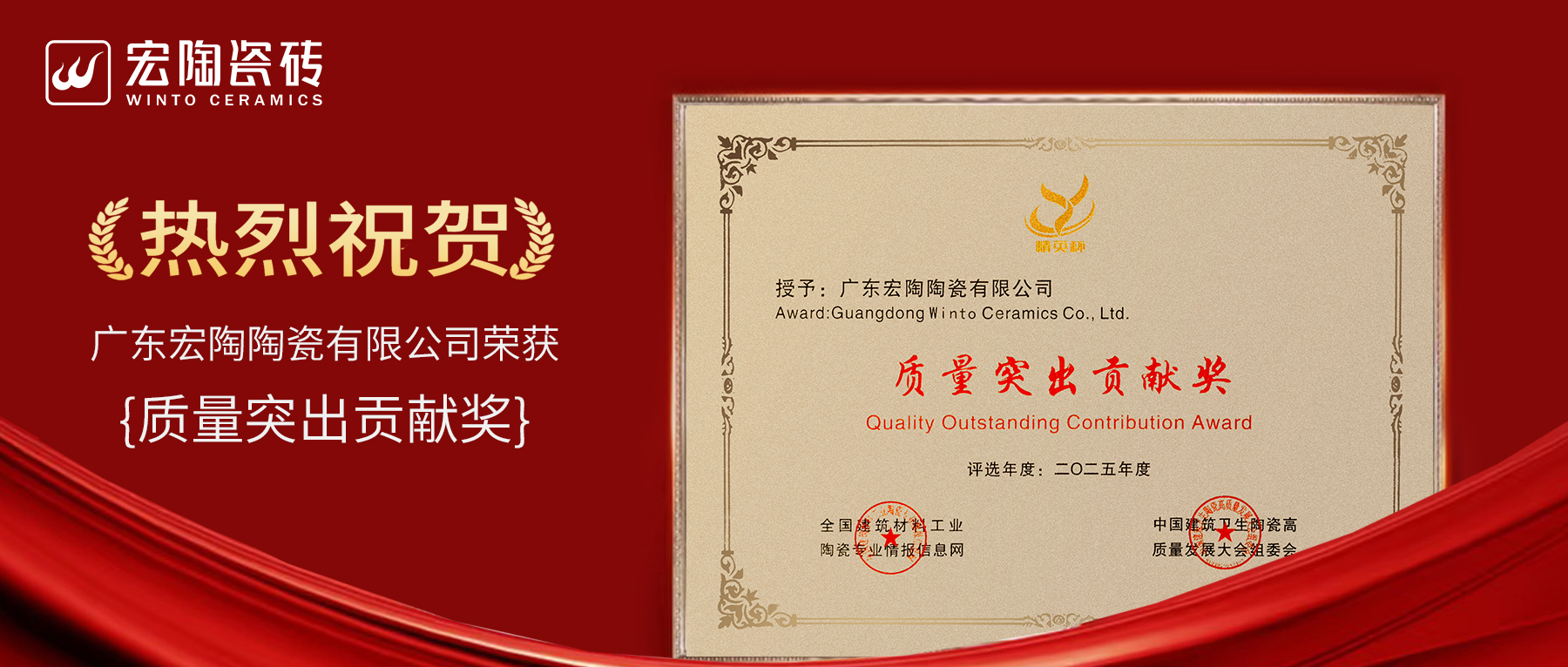 品質至上,質量制勝 | 宏陶瓷磚榮獲2025年度質量突出貢獻獎